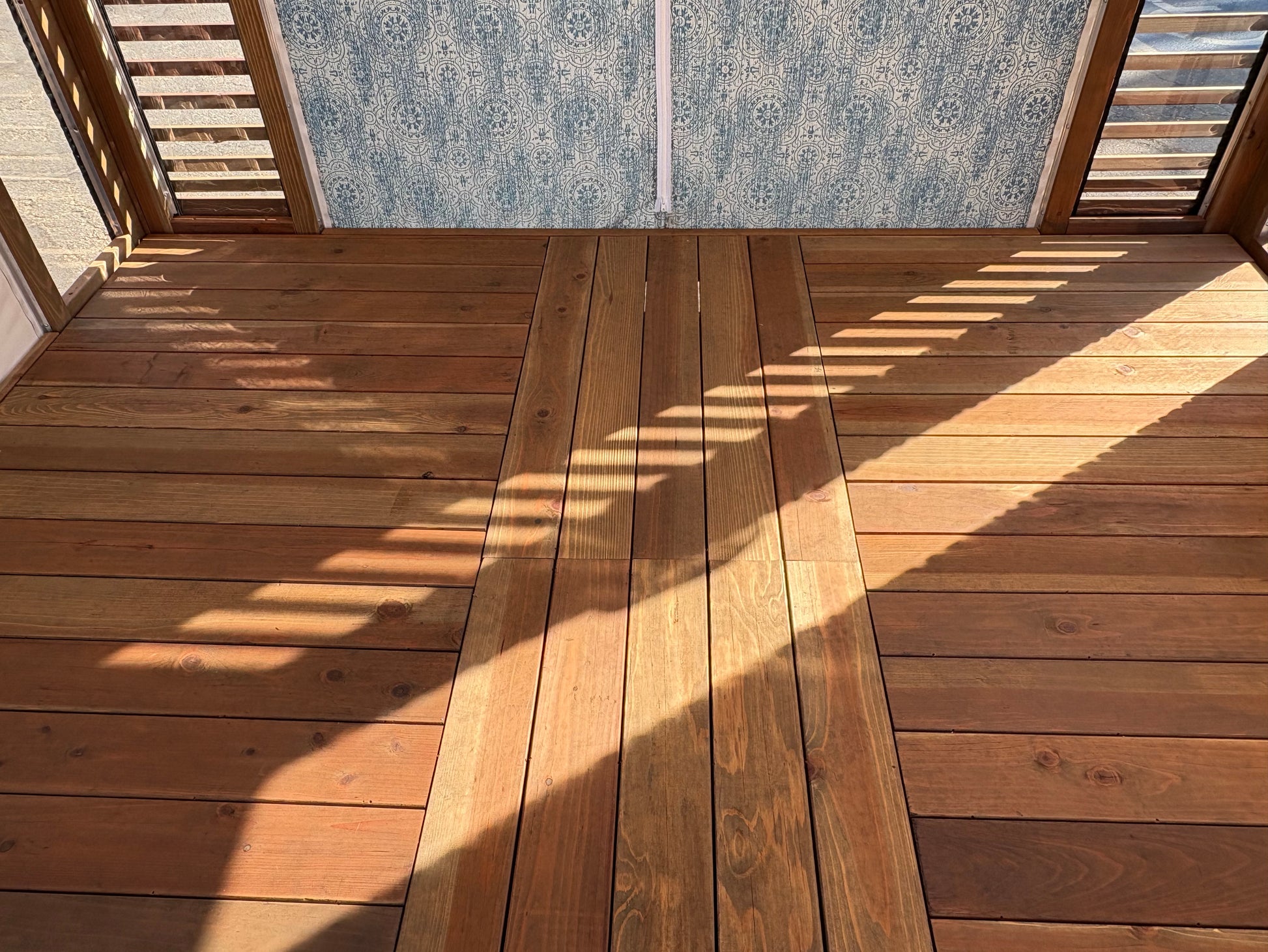 Constructed with a 2' x 6' redwood deck